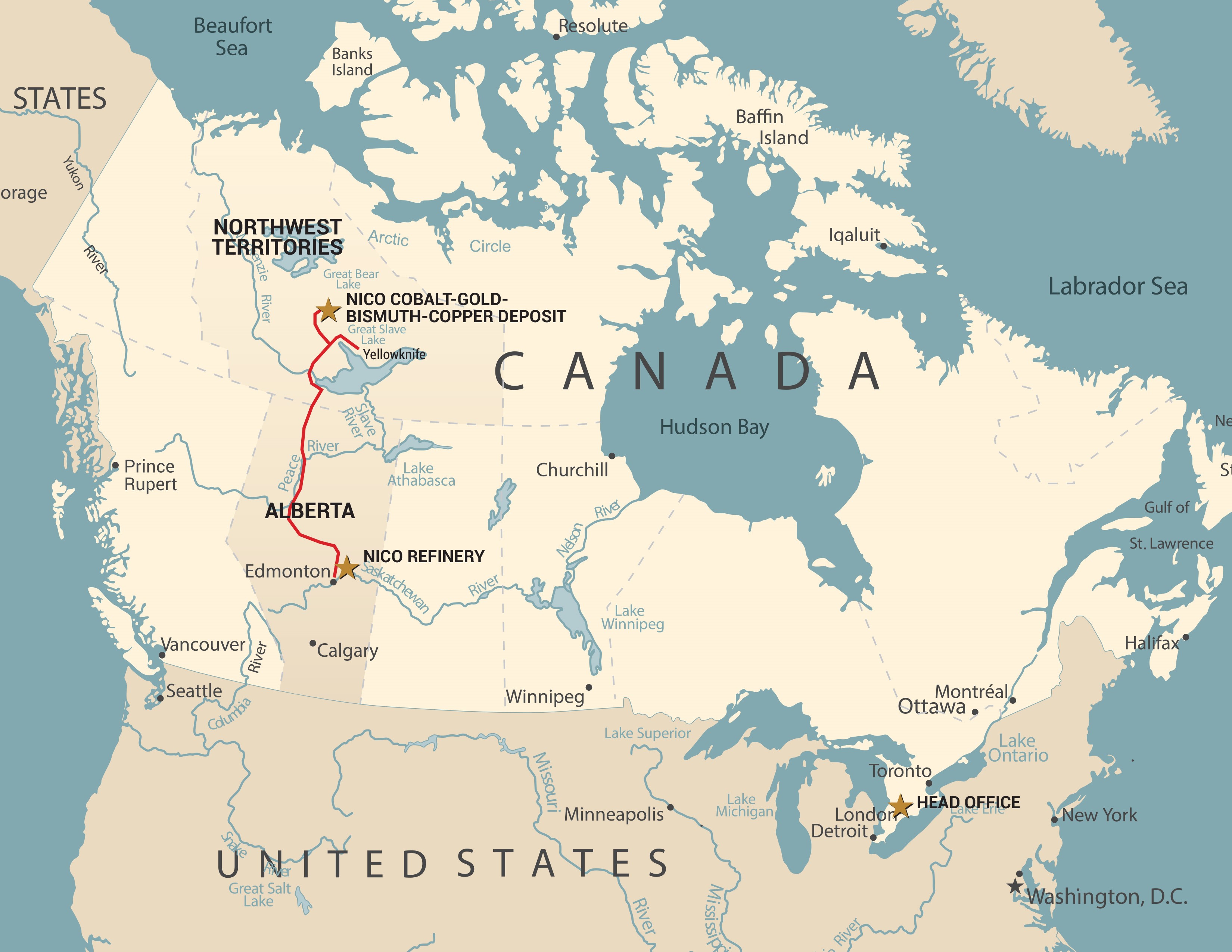 The NICO Project is a development stage vertically integrated asset comprised of a planned mine and concentrator in the Northwest Territories and a dedicated hydrometallurgical facility in Alberta where concentrates from the mine, and other feed sources, will be processed to value-added products. The Alberta Refinery will produce cobalt sulphate heptahydrate, gold doré, bismuth ingots, and copper cement, all of which have expanding market demand from traditional uses and new applications in the energy transition, high technology, environmental, and defence industries.